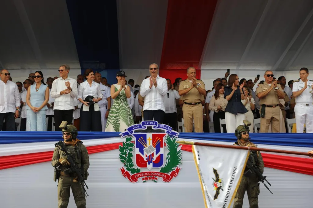 En el desfile, batallones del Ejército, la Armada y la Fuerza Aérea de República Dominicana, junto con unidades de la Policía Nacional, mostraron sus equipamientos, muchos adquiridos en la actual gestión del gobernante, y sus destrezas operacionales para defender la soberanía del suelo patrio y la seguridad ciudadana.