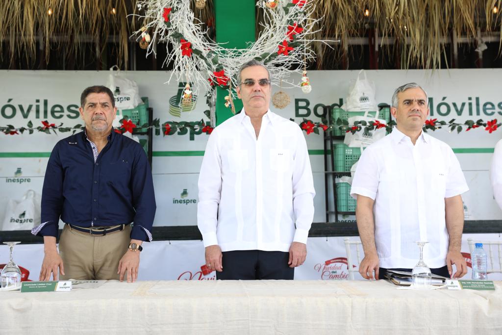 Santo Domingo RD,>El presidente Luis Abinader encabezó hoy el inicio de las Grandes Ferias “Navidad del Cambio con el Inespre”, en las que la población podrá adquirir alimentos de la época en combo y detallados en 8 grandes encuentros, desde el jueves 1 de diciembre del 2022 hasta el sábado 7 de enero del 2023, de 9 de la mañana a 6 la tarde.