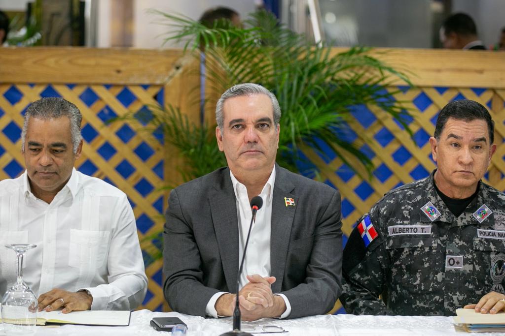 En compañía del presidente Abinader, están los ministros, de Defensa, teniente general Carlos Luciano Díaz Morfa; de la Presidencia, Joel Santos Echavarría; de Interior y Policía, Jesús Vásquez Martínez; el director general de la Policía Nacional, mayor general Eduardo Alberto Then; el comandante general del Ejército de República Dominicana, mayor general Carlos Antonio Fernández Onofre; el comandante de la Armada de República Dominicana, vicealmirante, Agustín Alberto Morillo Rodríguez; y el presidente de la Dirección Nacional de Control de Drogas (DNCD), vicealmirante José Manuel Cabrera Ulloa.