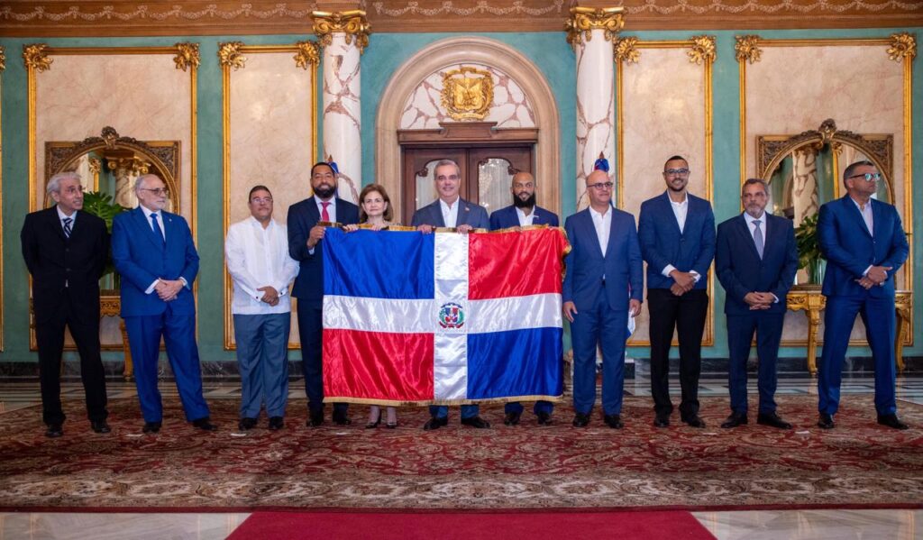 El jefe de Estado entregó la bandera dominicana al conjunto añil, que tendrá su primer compromiso del certamen en la jornada del jueves ante Venezuela.