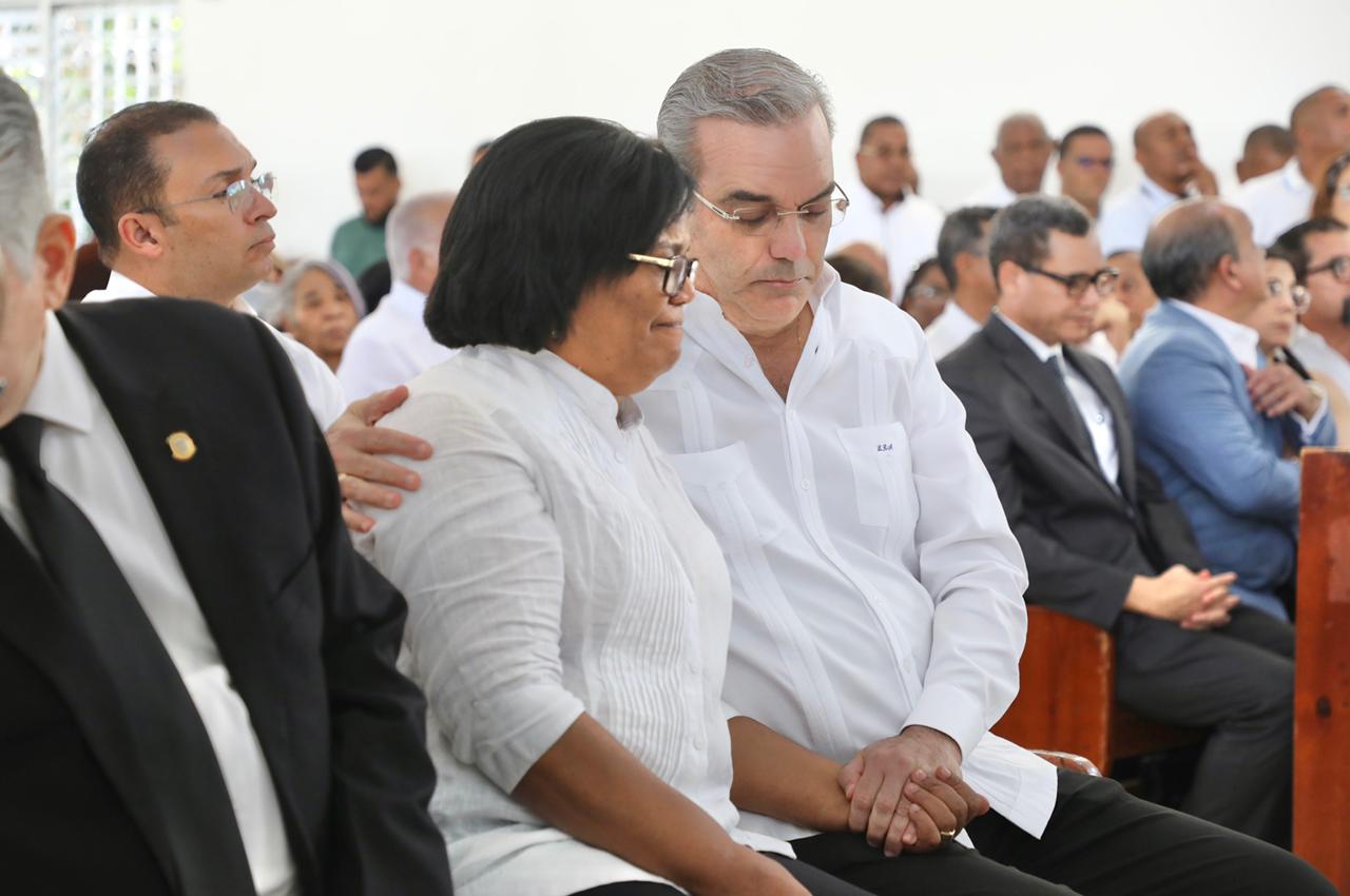 El Presidente Luis Abinader saludó a los familiares al llegar a la parroquia Nuestra Señora de Fátima en el municipio de Galván donde se realizó la misa.