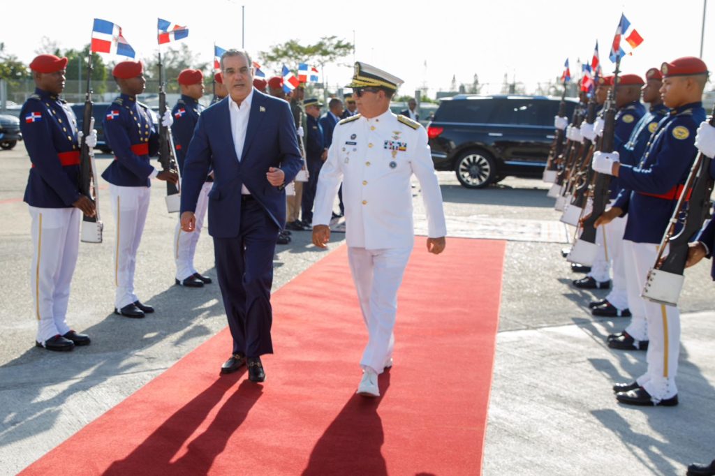 Acompañan al presidente Abinader, el ministro de Relaciones Exteriores, Roberto Álvarez; el encargado de la Secretaría General del Gabinete del Presidente, Eilyn Beltrán; el jefe del Cuerpo de Seguridad Presidencial, mayor general Jimmy Arias y el director de Prensa del Presidente, Daniel García Archibald.