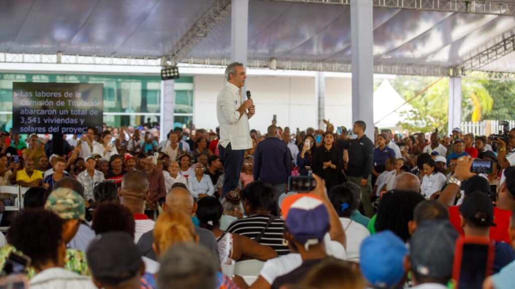 Santo Domingo RD,>El presidente Luis Abinader se propone entregar 300,000 nuevos títulos de propiedad en los próximos cuatro años, según manifestó este sábado en el sector El Tamarindo, donde hizo entrega del certificado número 100,000.