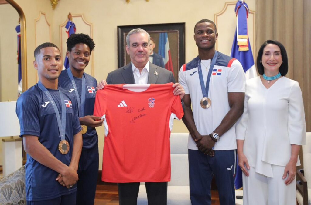 Santo Domingo RD,.El presidente Luis Abinader recibió este lunes en el Palacio Nacional a los medallistas olímpicos, Marileidy Paulino, Yunior Alcántara y Cristian Pinales, quienes se llevaron preseas en los Juegos Olímpicos de París, Francia 2024.