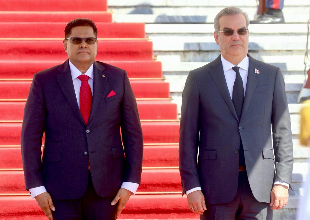 Santo Domingo RD,>El presidente Luis Abinader recibió este jueves en el Palacio Nacional a su homólogo de la República de Surinam, Chandrikapersad Santokhi, quien realiza una visita oficial al país.