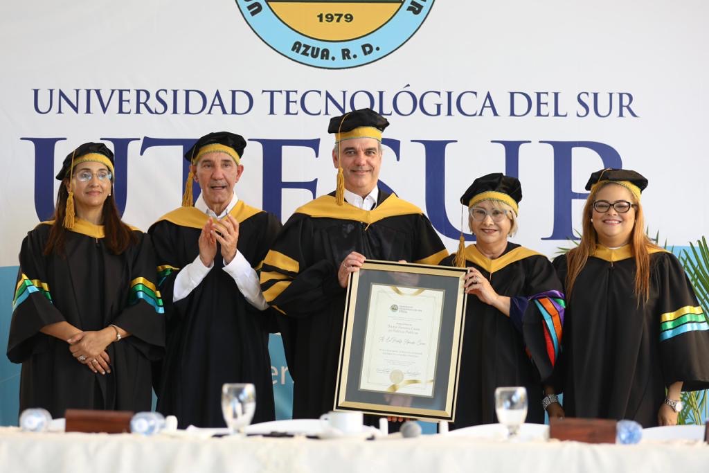 Y agregó: «Agradezco al Consejo de Directores de UTESUR está distinción, me compromete mucho más a seguir estas políticas públicas y sobre todo con lo que es la bandera de nuestro gobierno que tiene que ser la transparencia y la honestidad».
