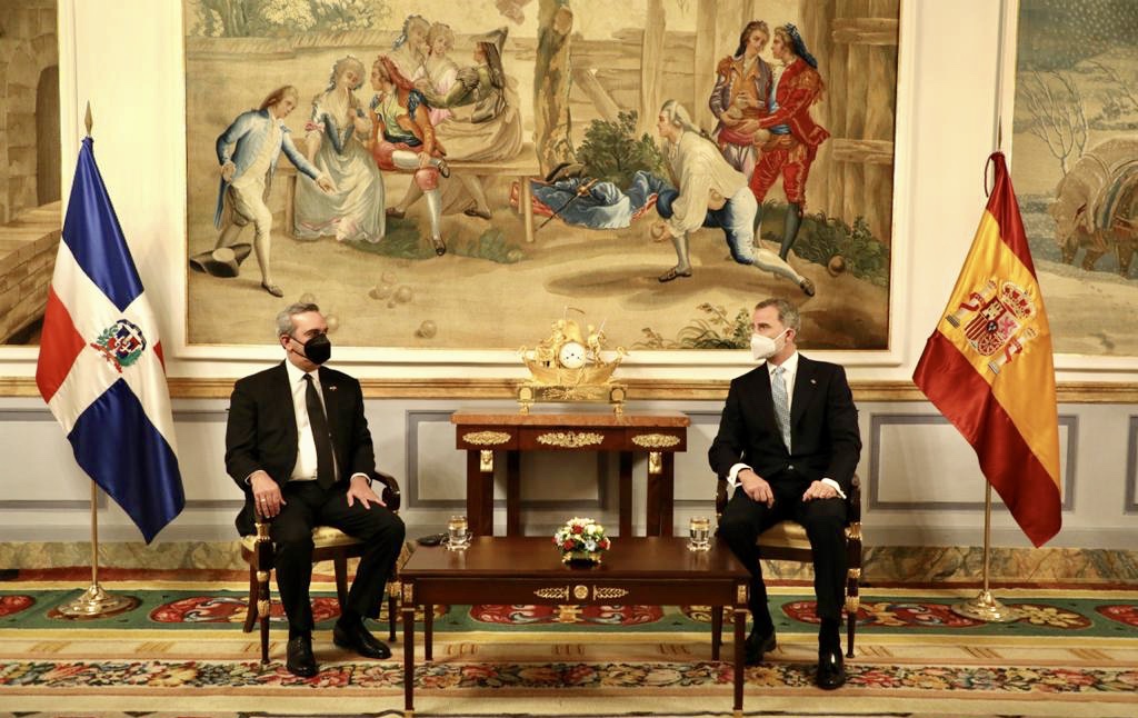 MADRID, España.– El encuentro de hoy del presidente dominicano Luis Abinader con el rey de España, Felipe VI, en el Palacio Real de El Pardo, sirvió para ambos abordar los temas de la vacunación, la crisis económica mundial y las relaciones bilaterales.