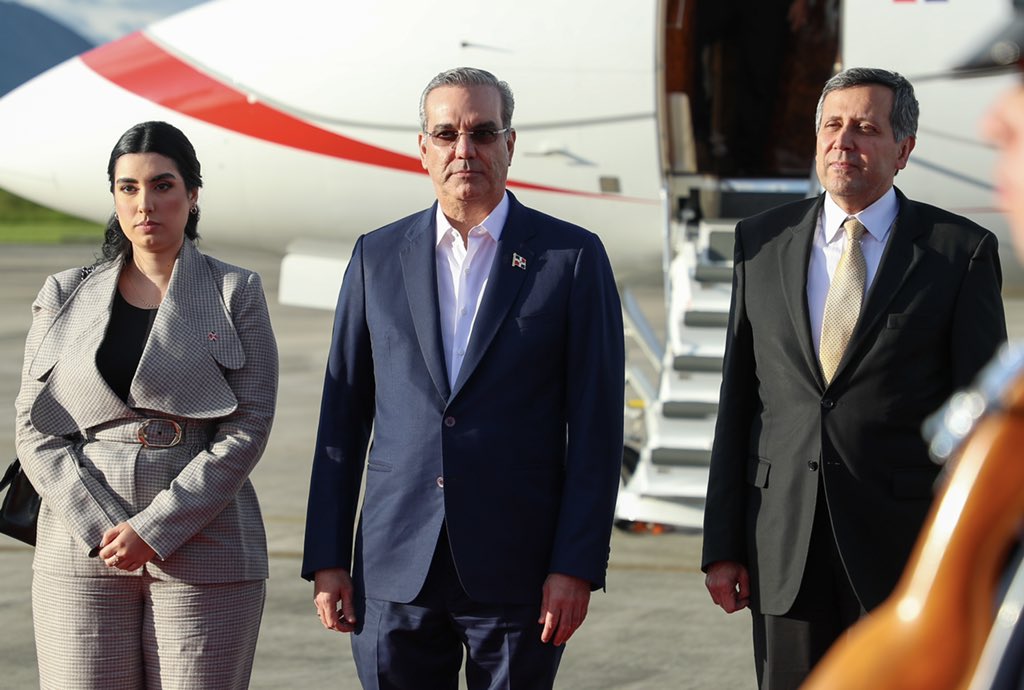 Completan la comitiva del mandatario dominicana el subdirector Cuerpo Especializado de Seguridad Presidencial (Cusep), general Jimmy Arias, ERD; y sus asistentes, Eilyn Beltrán y Mercedes Pichardo.