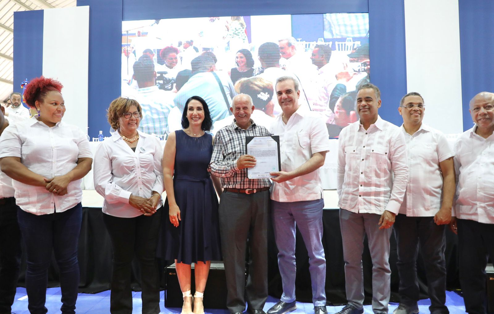El presidente de la República, Luis Abinader, la primera dama Raquel Arbaje de Abinader, el ministro de la presidencia Joel Santos, el director ejecutivo de la UTECT, Mérido Torres y el director del IAD, Francisco García García, el subdirector regional Sur, Duarte Méndez y los funcionarios locales de la provincia de Pedernales hicieron entrega de los títulos de propiedad a los 10 primeros beneficiarios.