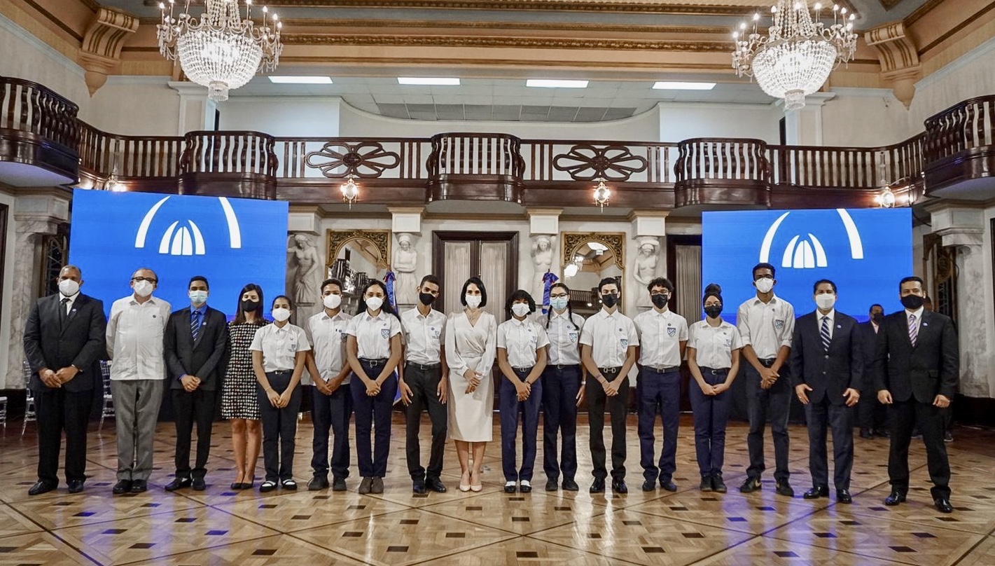 Los jóvenes fueron recibidos en el Palacio Nacional por Arbaje quien, al anunciarles las becas, resaltó sus méritos y deseó que se conviertan en estímulo para que más niños y niñas se interesen en las ciencias y en las tecnologías de la información y la comunicación.