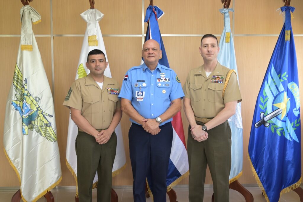Durante una visita oficial, el general de brigada piloto Enmanuel Souffront Tamayo, FARD, director general del CESAC, recibió al teniente coronel Lowell Krusinger, agregado superior de Defensa de la Embajada de EE.UU., con el propósito de intercambiar experiencias y conocimientos en materia de seguridad aeroportuaria.