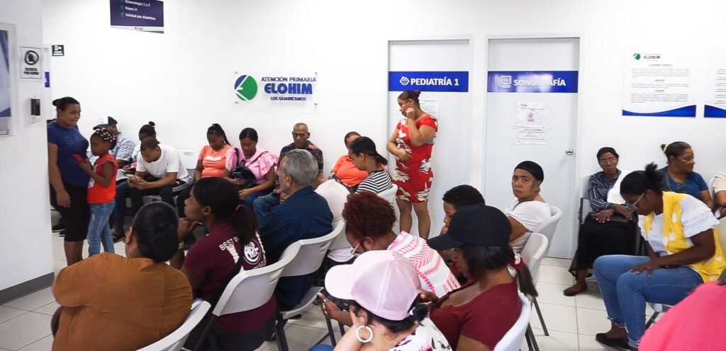 Santo Domingo, RD– Desde tempranas horas de la mañana una larga fila de ciudadanos, esperan fuera del Centro de Atención Primaria del Grupo Clínico Elohim ubicado en el Sector Los Guaricanos en Santo Domingo Norte para poder recibir los servicios médicos brindados por el Centro.