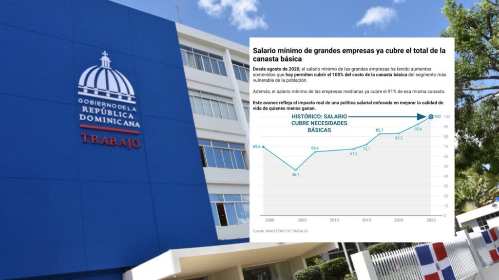 Santo Domingo RD, -Por primera vez desde que se lleva registro, el Ministerio de Trabajo reveló que el salario mínimo de las grandes empresas permite cubrir completamente el costo de la canasta básica del segmento más vulnerable de la población.