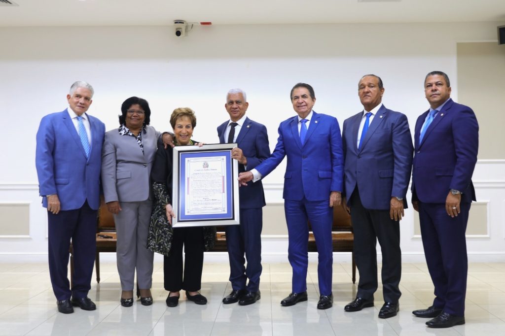 Ricardo de los Santos, presidente de la Cámara Alta, destacó la meritoria labor que durante décadas ha realizado la homenajeada constituyéndose en un referente de la educación en el país.