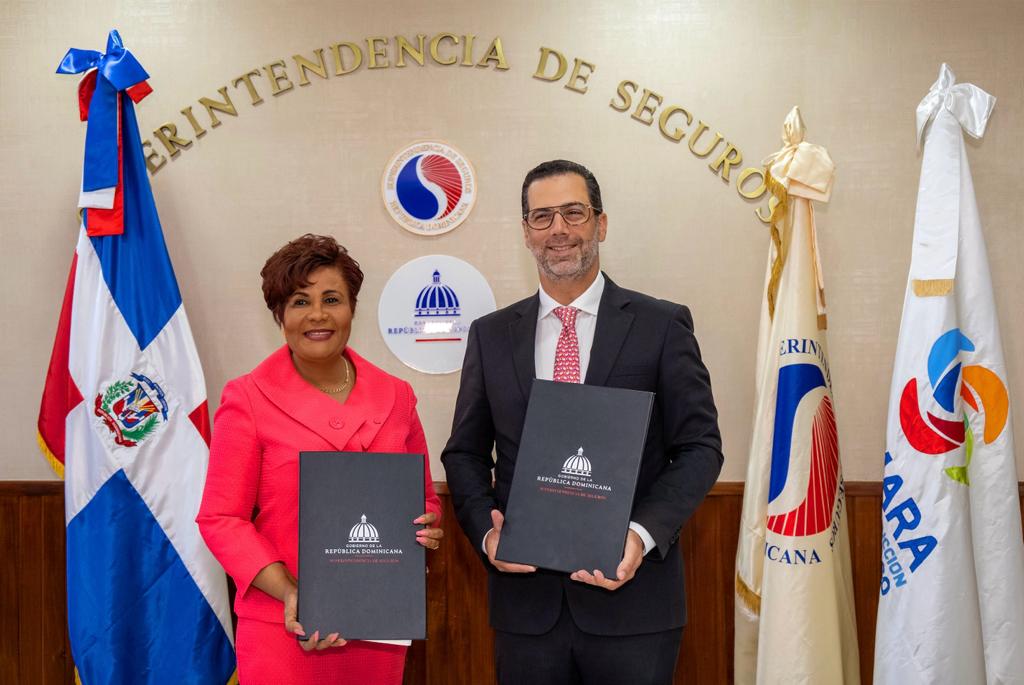 A la firma también asistieron Francisco Campos Álvarez y Juan Hernández Buret, Intendente de Seguros y Director Jurídico, respectivamente de la Superintendencia de Seguros y por la Cámara de Comercio y Producción de Santo Domingo, su vicepresidente ejecutivo, Antonio Ramos y Alejandra Pérez, Consultora Jurídica Adjunta.