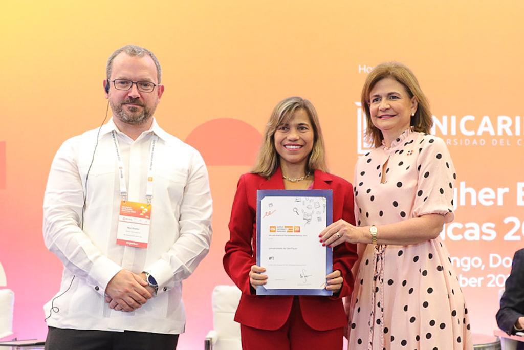 Peña agradeció a los organizadores de QS World University Rankings por reconocer el potencial de la República Dominicana como un hub de innovación y conocimiento en la región.