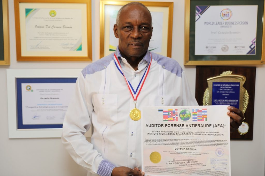 Santo Domingo RD,>El vicepresidente del Consejo de Administración de la Cooperativa Nacional de Servicios Múltiples de los Maestros (COOPNAMA), Prof, Octavio Bremón, recibió la Certificación Internacional de Auditoria Forense Antifraude (AFA), por parte del Instituto Internacional de Auditores Forenses Antifraude (IIAFA).