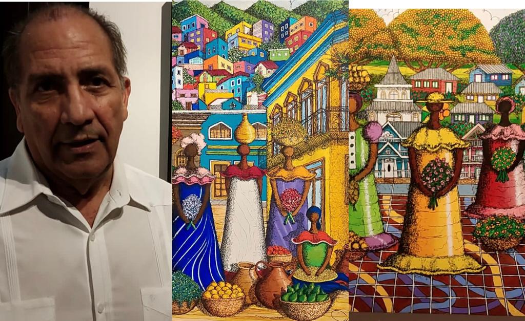 Por medio de la perfección que muestran sus dibujos en blanco y negro y de cómo cruza a la intensidad de colores a través de iconos y paisajes que representan la cultura dominicana, pero que hemos olvidado.