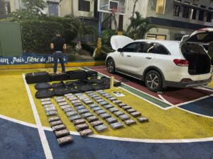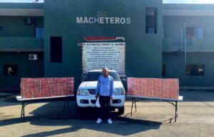 Parte de los cigarrillos ilícitos ocupados por el Ejército fueron encontrados dentro del neumático de repuesto del vehículo. Valverde, RD....