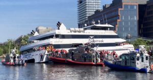 Nueva York,>Un ferry de Seastreak con 125 personas a bordo, 118 pasajeros y 7 miembros de la tripulación, encalló el...