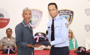 Auxiliares de la Policia Escolar reciben uniformes. Santo Domingo DN,>La Policía Escolar, que dirige el Coronel Martín Miguel Tapia, cumpliendo...