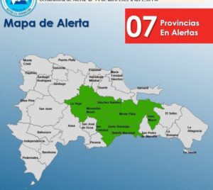 Santo Domingo RD,>El Centro de Operaciones de Emergencias (COE), informó este jueves que mantiene en alerta verde a siete debido...