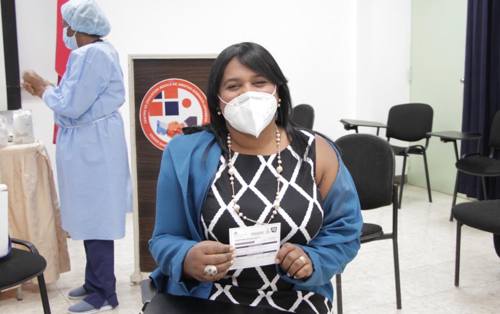 La directora de CEMADOJA, doctora Glendis Ozuna, fue la primera en recibir la dosis para la inmunización contra el Covid-19, quien motivó a su personal de primera línea y a la población en general a vacunarse contra esta pandemia que ha azotado al país y al mundo.