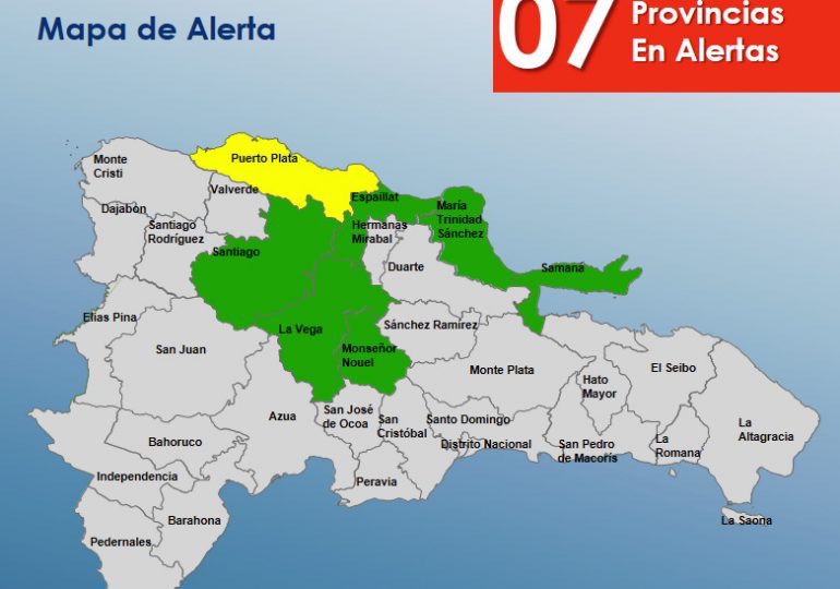 Las provincias en alerta verde 🟢 son: Santiago, Maria Trinidad Sánchez, La Vega, Samaná y Monseñor Nouel.