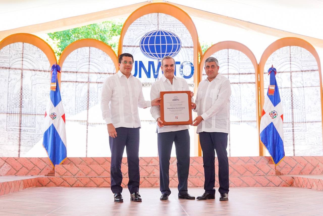 República Dominicana se convirtió en el país número uno en la recuperación del sector, dijo el secretario general de la OMT, el georgiano Zurab Pololikashvili, en el acto donde entregó una placa de reconocimiento al presidente del país, Luis Abinader, y al ministro de Turismo, David Collado.