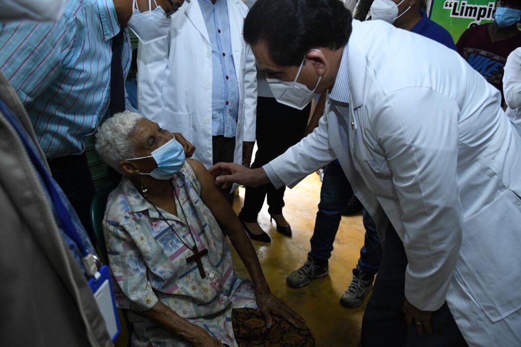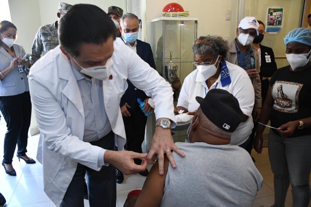 Al concluir la actividad formal, el titular de Salud se dirigió a la Fundación Cruz Jiminián, donde intercambió con el doctor Félix Antonio Cruz Jiminián, e inmunizó a la señora Natividad Roque de 86 años.