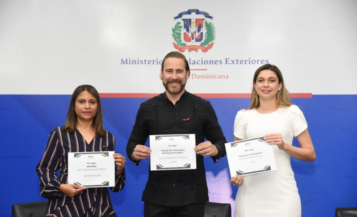 Los tres ganadores fueron, en primer lugar, con una dotación de 3 mil dólares, Oscar Enrique Socías Santana, residente en Japón, con el cortometraje titulado “Dominicanos en Japón”; en segundo lugar que recibió dos mil dólares quedó Luis María Estévez Pérez, radicado en Perú, con el audiovisual “Huellas de mi Quisqueya”; mientras que en tercero ganó Karen Mariel Joaquín Cedano, quien vive en Barcelona, España y participó con el corto que tituló “Sentidos”, recibiendo mil dólares.