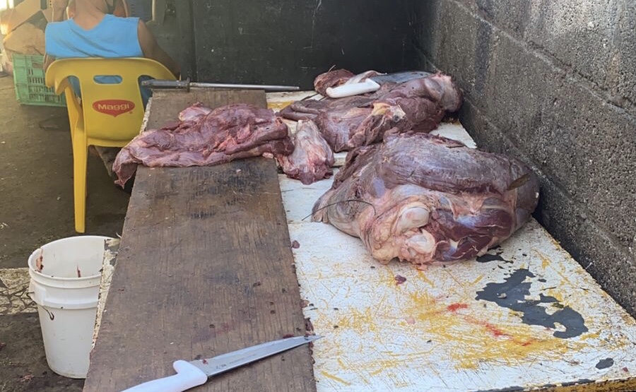 Se trata de una carnicería donde fueron encontrados productos (carnes) en mal estado. Las autoridades se incautaron de seis (6) quintales de carne de caballo, dos (2) de cerdo y un quintal de carne de pollo.