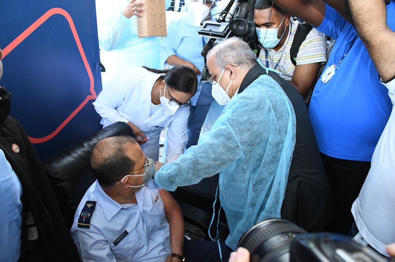 El doctor Plutarco Arias dijo que el personal que recibió la primera dosis de la vacuna pertenece a los Hospitales Ramón de Lara, Francisco Moscoso Puello y Marcelino Vélez Santana.