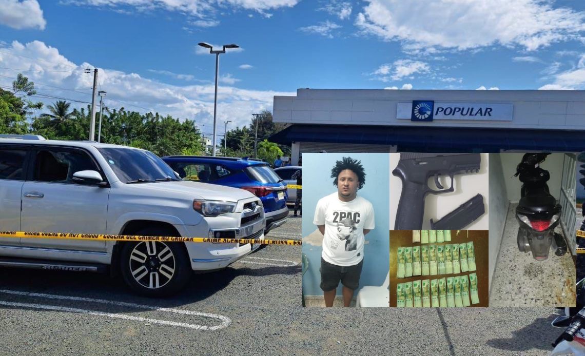 Santo Domingo RD,>Agentes policiales, pertenecientes a la dirección regional de La Vega, apresaron a un hombre por ser uno de los presuntos autores de matar a Edward Ramón Ramírez Abreu, en un hecho ocurrido en el estacionamiento de la sucursal del Banco Popular de esta ciudad.