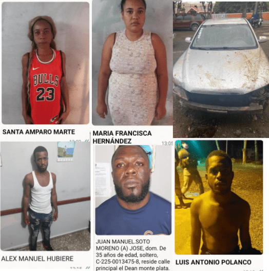 Mediante una ardua persecución las autoridades policiales, apresaron a los nombrados Gustavo Puello, de 21 años, Dean, Danilo Ezequiel Monsanto Frías, de 26 años, Alex Manuel Hubieres, de 24 años, Luis Antonio Polanco, de 32 años, Wilson Guzmán, de 19 años, Marcos Aurelio García, de 25 años, Juan Daniel Genao, de 18 años, Charlin Chantal Fulgencio Feliz, de 24 años, María Francisca Hernández, de 27 años, Juan Manuel Soto Moreno, de 35 años, Rosi Montes De Oca, de 18 años, Santa Amparo de 32 años, Jorge Reyes, de 37 años, Vargas López, de 38 años y Ángel Miguel Heredia Cepeda, de 38 años.