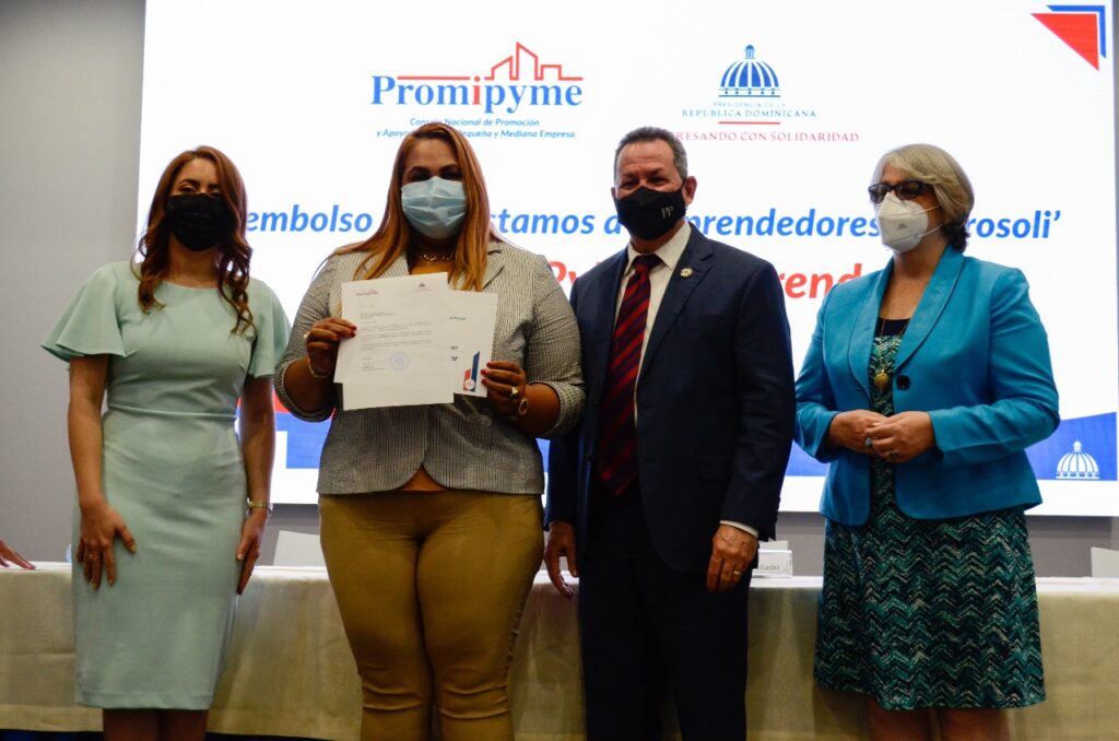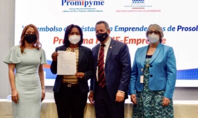Santo Domingo RD,>El Consejo Nacional de Promoción y Apoyo a la Micro, Pequeña y Mediana Empresa (Promipyme) en conjunto con Progresando con Solidaria (Prosoli) dieron continuidad al convenio institucional previamente firmado, desembolsando un total de seis millones doscientos ochenta y cuatro mil quinientos pesos dominicanos con el propósito de contribuir a la disminución de la pobreza y vulnerabilidad de las familias del país.