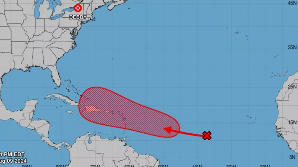 Santo Domingo RD,>Durante las pasadas horas, la zona de aguaceros con tormentas eléctricas asociada a una activa onda tropical localizada al oeste/suroeste de las islas de Cabo Verde sobre el Atlántico tropical, ha continuado su desarrollo y evolución siendo actualmente de un 60% en 48 horas y un 90% para los próximos 7 días de convertirse en un ciclón tropical. Se prevé que las condiciones ambientales de su entorno sigan favorables para que continúe su desarrollo a medida se aproxime al arco de la Antillas Menores.