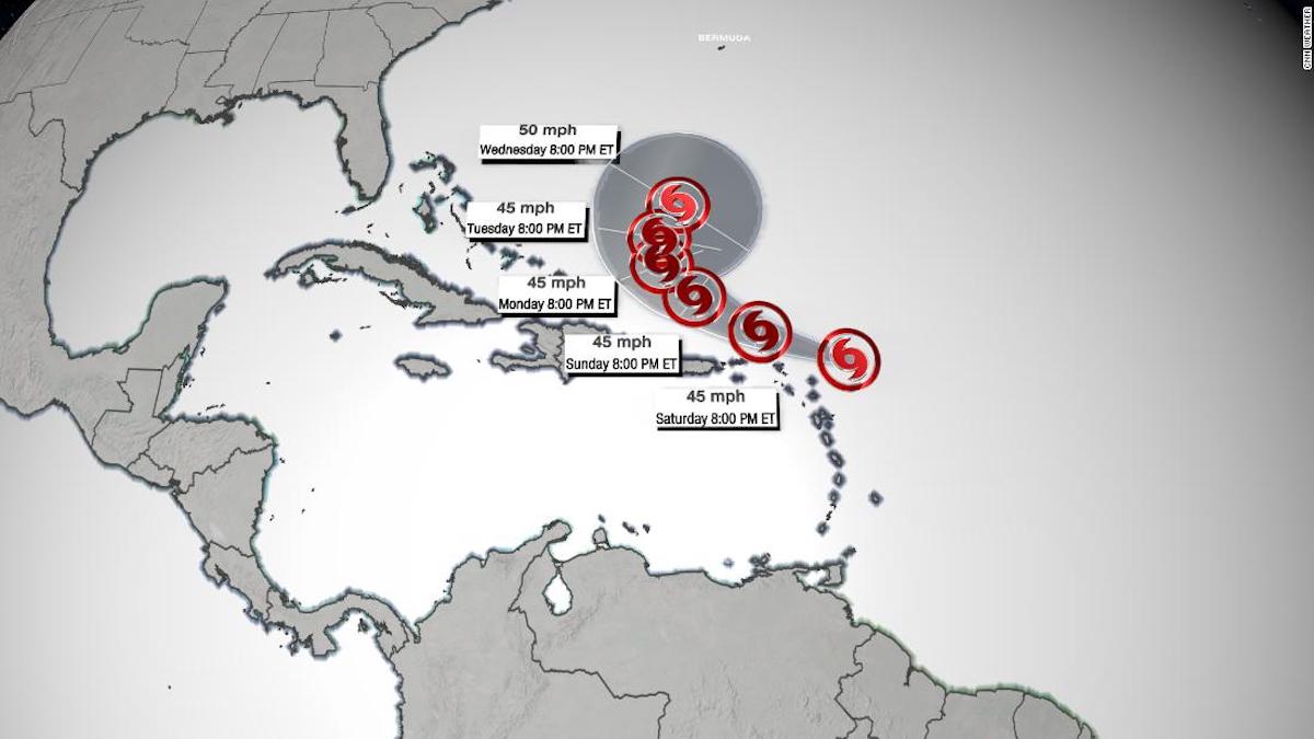 Santo Domingo RD,>La Oficina Nacional de Meteorología (ONAMET), informa que las 5:00 a.m. el centro de la tormenta tropical EARL, fue ubicado cerca de la latitud 20.9 norte y longitud 65.3 oeste, a unos 280 km al norte de St. Thomas (Antillas Menores), se mueve hacia el nor/noroeste a unos 7 km/h, vientos máximos de 85 km/h. Presión mínima central de 998 milibares. Damos seguimiento de cerca a la evolución y desarrollo de este fenómeno meteorológico.