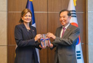 COREA INTERESADA COLABORAR CON RD EN ENERGÍA Y TRANSPORTE Seúl, Corea.-La vicepresidenta de la República Raquel Peña, y el Primer...